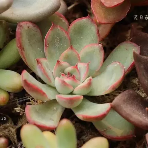红边月影为景天科石莲花属多肉植物,在温差增大,光照增多时绿色的叶子会呈现边沿红色,非常好看!…