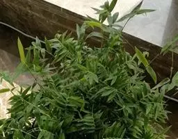 凤尾竹 Raeusch. ex Schult. ’Fernleaf’ R. A. Young)是禾本科,簕竹属孝顺竹的变种。植株较高大,杆高可达6米,竿中空,小枝稍下弯,下部挺直,绿色;竿壁稍薄;节处稍隆起,无毛;叶鞘无毛,纵肋稍隆起,背部具脊;叶耳肾形,边缘具波曲状细长繸毛;叶舌圆拱形,叶片线形,上表面无毛,下表面粉绿而密被短柔毛,小穗含小花,中间小花为两性;外稃两侧稍不对称,长圆状披针形,先端急尖;内稃线形,脊上被短纤毛,花药紫色,子房卵球形,羽毛状。成熟颖果未见。原产中国,华东、华南、西南以至台湾、香港均有栽培。凤尾竹喜温暖、湿润和阳光充足的环境,耐寒。宜土层深厚、肥沃、疏松的微酸性壤土。该种观赏价值较高,宜作庭院丛栽,也可作盆景植物。全草或根入药,味淡、微苦,性寒,有清热利湿、凉血止血、消肿解毒功效,可治痢疾、泄泻等多种病症。凤尾