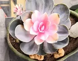 紫珍珠是景天科石莲花属的多年生肉质草本植物。植株中小型;叶片肉质,匙形,呈莲座状紧密排列;叶片粉紫色,…