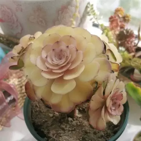 高砂之翁是景天科,拟石莲花属的多肉植物。特征是其边缘呈大波浪卷形的宽大叶片,…