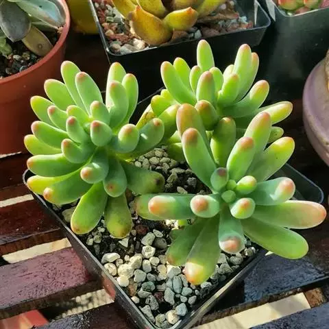新玉缀是景天科、景天属的多年生植物,多肉植物。景天科景天属多肉植物。叶片不弯曲,叶端圆形。体肥厚肉质,…