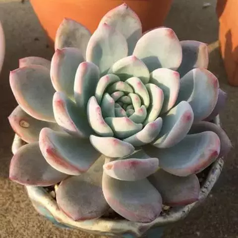 大和锦是景天科拟石莲花属的多肉植物。肉质叶排成紧密的莲座状,广卵形至散三角卵形,背面突起呈龙骨状,…