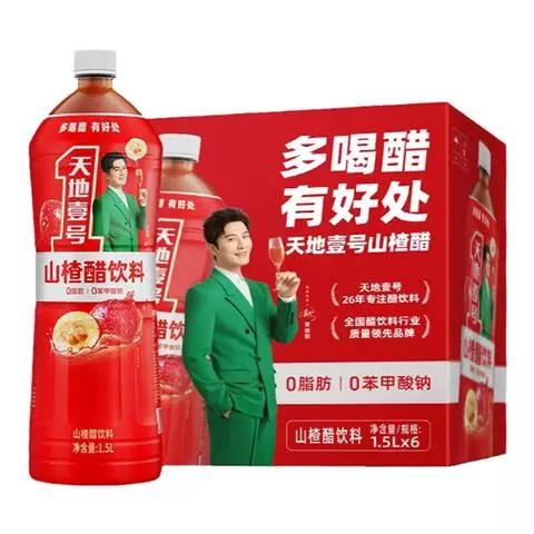 天地壹号推出的山楂醋饮料,口感酸甜,有助于开胃消食。