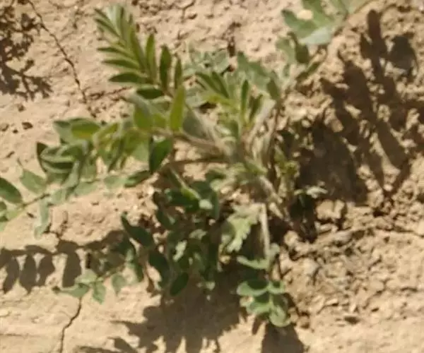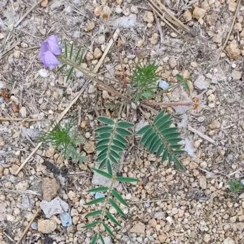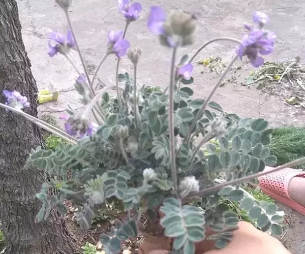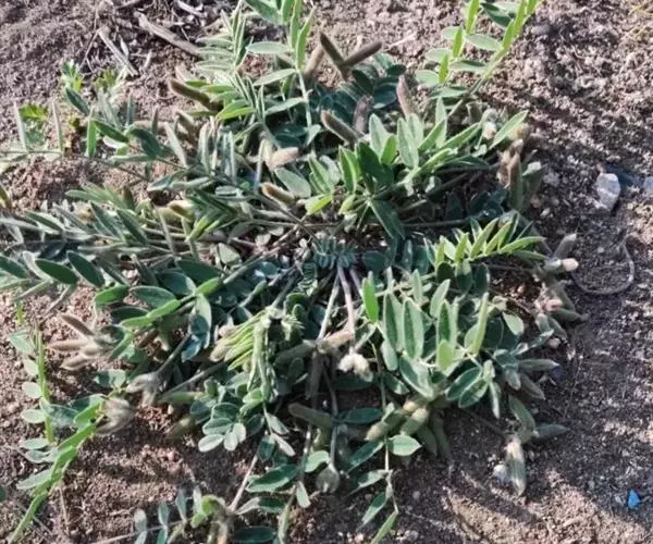 多年生草本,主根圆锥状。分茎极缩短,叶及总花梗于分茎上丛生。托叶宿存,下面的阔三角形,上面的狭三角形,基部合生,外面密被白色长柔毛;叶在早春时长仅2-5厘米,夏秋间可长达15厘米,个别甚至可达23厘米,早生叶被长柔毛,后生叶毛稀疏,甚几至无毛;叶柄具沟;小叶7-21片,椭圆形到长圆形,卵形到长卵形,有时披针形,顶端小叶有时为倒卵形,长 (4.5) 10-14 (-25) 毫米,宽 (1.5) 5-8 (-10) 毫米,基部圆,先端具细尖,急尖、钝、微缺或下凹成弧形。伞形花序有2-6朵花;总花梗具沟,被长柔毛,花期较叶稍长,花后约与叶等长或短于叶长;苞片三角状线形,长2-4毫米,花梗长1-3.5毫米;花萼钟状,长7-8毫米,被贴伏长柔毛,上2萼齿最大,与萼筒等长,下3萼齿较小,最下一片最小;花冠紫堇色,旗瓣长13毫米,宽8毫米,倒卵形,全缘,先端微缺,基部渐狭成瓣柄,翼瓣长10毫米,宽3毫米,斜长倒卵形,具短耳,瓣柄长3毫米,龙骨瓣长6毫米,宽2毫米,倒卵形,瓣柄长2.5毫米;子房椭圆状,密被贴服长柔毛,花柱无毛,内卷,顶端膨大成圆形柱头。荚果圆筒状,长17-22毫米,直径3-4毫米,被长柔毛;种子三角状肾形,直径约1.8毫米,具凹点。花期4月。果期5-6月。