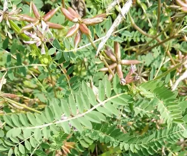 多年生草本,主根直下,分茎具宿存托叶。叶长2-20厘米;托叶三角形,基部合生;叶柄具沟,被白色疏柔毛;小叶7-19片,长椭圆形至披针形,长0.5-2.5厘米,宽1.5-7毫米,钝头或急尖,先端具细尖,两面被疏柔毛,有时上面无毛。伞形花序有花2-4朵,总花梗约与叶等长;苞片长三角形,长2-3毫米;花梗长0.5-1毫米;小苞片线形,长约为萼筒的1/2;花萼钟状,长5-7毫米,被白色疏柔毛;萼齿披针形,上2萼齿约与萼筒等长,下3萼齿较短小,最下一片最小;花冠红紫色,旗瓣卵形,长13毫米,先端微缺,基部渐狭成瓣柄,翼瓣瓣片倒卵形具斜截头,长11毫米,具短耳,瓣柄长3毫米,龙骨瓣瓣片倒卵形,长5.5毫米,瓣柄长2.5毫米;子房椭圆状,密被疏柔毛,花柱无毛,内卷。荚果长圆筒状,长15-20毫米,直径3-4毫米,被长柔毛,成熟时毛稀疏,开裂。种子圆肾形,直径1.5毫米,具不深凹点。花期5月,果期6-7月。