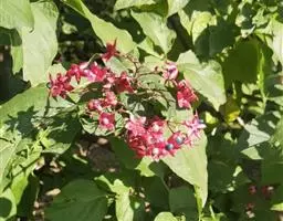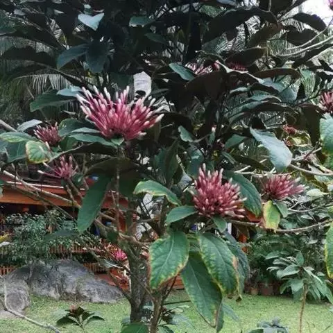 烟火树 Merr.)是唇形科、大青属常绿灌木或小乔木,株高可达4米。幼枝方形,墨绿色。叶对生,…