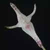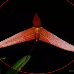 花瓣质地较薄,白色,近卵形或椭圆形,长1-2毫米,中部宽1-1.5毫米,先端稍钝,具1条脉,有时3条,但仅中肋到达先端;唇瓣橘红色,肉质,舌形,稍向外下弯,基部具短爪并且与蕊柱足末端连接,先端钝,边缘具细乳突或白色腺毛,上面具2条密生细乳突的龙骨脊;蕊柱粗短,长约1毫米;蕊柱齿短钝,呈三角形或牙齿状,与药帽近等高,长约0.2毫米,先端稍锐尖;蕊柱足橘红色,长约1毫米,其分离部分长约0.5毫米;药帽近半球形或心形,前端稍收窄,先端下弯,上面被细乳突。花期4-8月。