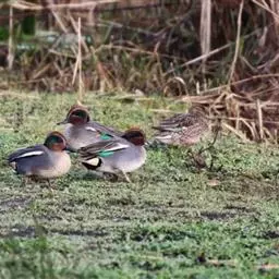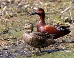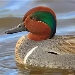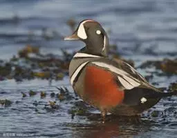 绿翅鸭是小型鸭类,体长37厘米,体重约0.5千克。嘴脚均为黑色。雄鸟头至颈部深栗色,…