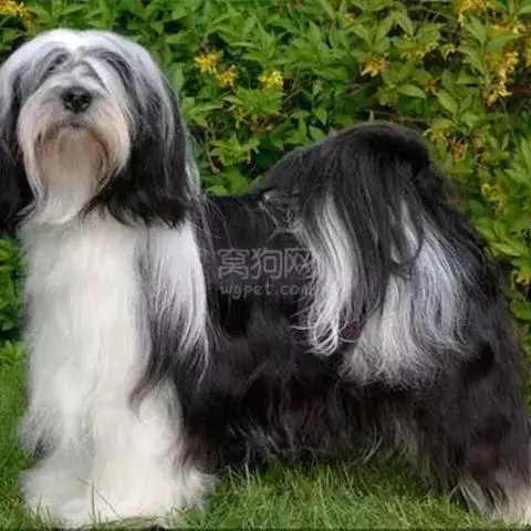 尾巴:尾巴上的毛很丰富,像狐狸尾巴,恰好位于背线之下,犬立正时尾巴通常自然下垂。尾巴举起时不卷在身体的任何一侧,也不平放在背上。正常情况下,应答时犬会摇动尾巴。尾巴上的毛中等长度,上面、侧面、下面的毛长度基本一致,因此看起来很像一个圆的狐狸尾巴。缺陷:尾巴平放或紧紧地卷着;尾根的位置太高或太低。