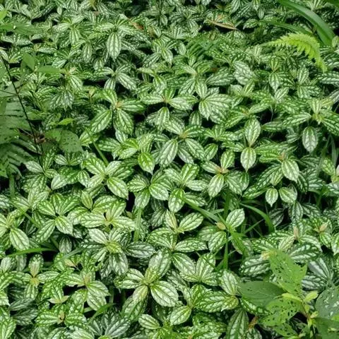 圆叶冷水花,为多年生草本植物,植株匍匐蔓延,分枝多而细,节处着地易生根。叶对生,圆形,径2~3cm,叶缘有齿。叶脉凹陷,脉间叶肉突起,看上去呈泡泡状。花小、不明显。
