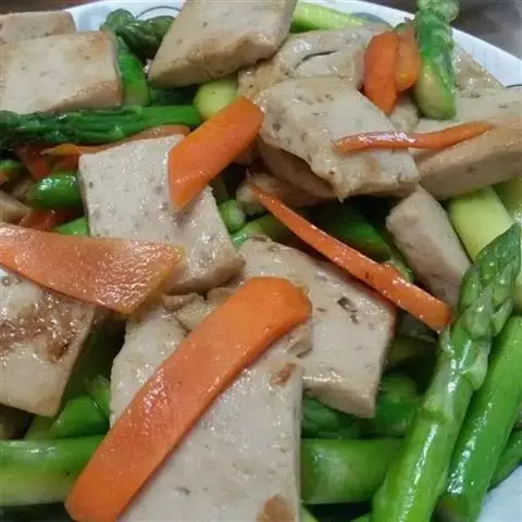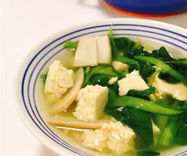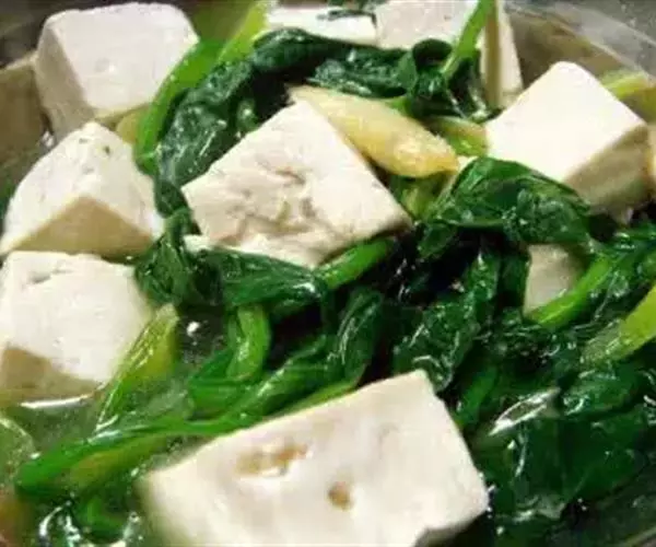 蔬菜豆腐是以蔬菜汁和豆乳为原料,以葡萄糖酸-δ-内酯为凝固剂制成的。蔬菜中,蔬菜汁豆腐具有悦人的色泽 。