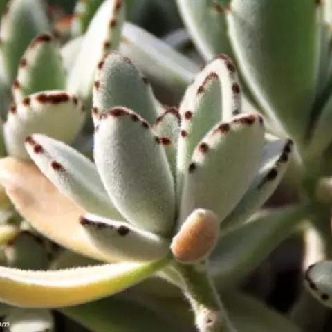 福兔耳是景天科伽蓝菜属的多肉植物,野外分布于非洲马达加斯加中部。植株叶片对生,长梭型,…