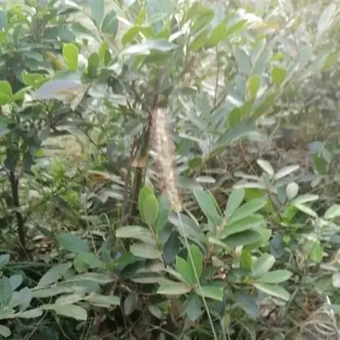 雄花穗状花序长1-1.5厘米,花无柄;萼筒极短,萼齿卵形或披针形,长1.5毫米;雄蕊2-7个,长4-7毫米,花丝纤细,花药卵圆形。蒴果卵圆形,长7-8毫米,外面有褐色星状柔毛,宿存花柱长1-2毫米,干后4片裂开。种子长3-4毫米,褐色,有光泽。