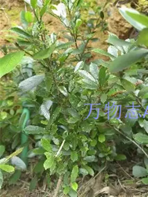 常绿灌木,高约1米;嫩枝粗壮,节间长2-4毫米,被褐色柔毛,老枝暗褐色,秃净无毛;芽体裸露、有柔毛。叶革质,矩圆形,长2-4厘米,宽约1厘米,先端略尖,基部阔楔形,上面绿色,稍发亮,下面秃净无毛;侧脉5对,在上面不明显,在下面隐约可见,网脉在上下两面均不明显;边缘在靠近先端处有2-3个小锯齿;叶柄长2毫米,略有柔毛;托叶披针形,早落。