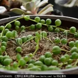 翡翠珠,是菊科千里光属的多年生常绿肉质草本植物。茎纤细,全株被白色皮粉;叶互生,较疏,圆心形,深绿色,…
