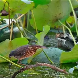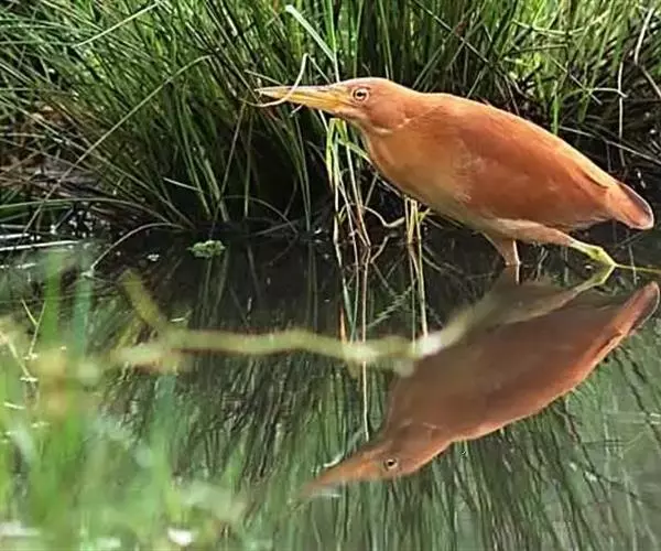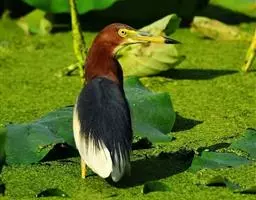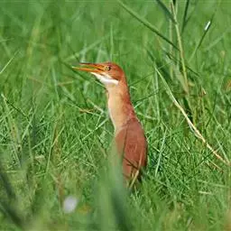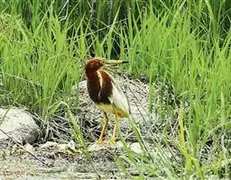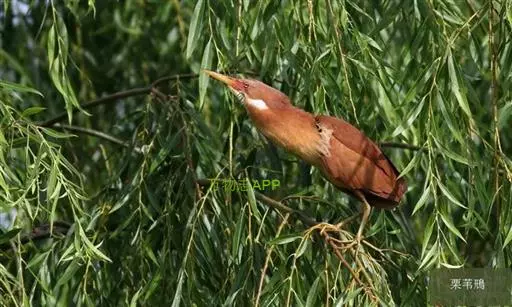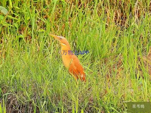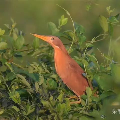 栗苇鳽(学名:Ixobrychus cinnamomeus)是一种中型涉禽。体长30-38厘米。外形和紫背苇鳽相似。雄鸟上体从头顶至尾包括两翅飞羽和覆羽全为同一的栗红色,下体淡红褐色,喉至胸有一褐色纵线,胸侧缀有黑白两色斑点,野外特征极为明显,容易辨认。雌鸟头顶暗栗红色,背面暗红褐色,杂有白色斑点,腹面土黄色,从颈至胸有数条黑褐色纵纹。栖息于芦苇沼泽、水塘、溪流和水稻田中。夜行性,多在晨昏和夜间活动,白天也常活动和觅食,但在隐蔽阴暗的地方,食性主要为小鱼、蛙、泥鳅和水生昆虫。分布于东亚、东南亚和南亚。