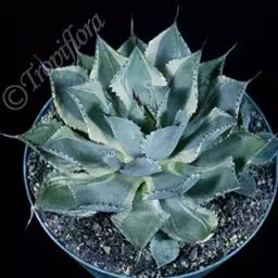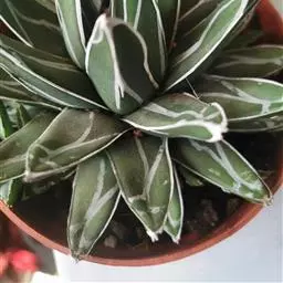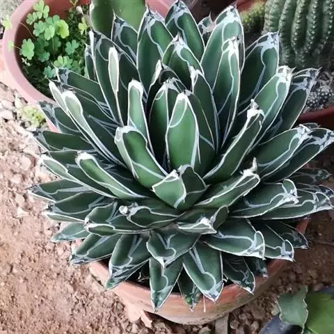皇后龙舌兰是天门冬科、龙舌兰属多年生草本多浆植物。无主茎,叶丛生,莲座状,株幅40厘米。叶较多,…