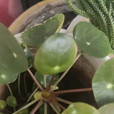 镜面草(学名:Pilea peperomioides Diels):是多年生肉质草本植物。镜面草那肥厚近圆形的肉质叶,叶柄盾状着生,很象古代仙人照面的镜子,故人们亲切地称它为镜面草。镜面草叶片深绿色,有光泽,叶的中央上方叶柄着生处有一个金黄色的圆点,故人们又称它为“一点金”。从中央向四周有辐射状叶脉,有人又叫它“金线草”。翠绿色的叶片又象圆形的屏风,云南人就普遍称它为“翠屏草”。