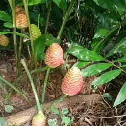 珊瑚姜是姜科、姜属植物。株高近1米。叶片长圆状披针形或披针形,长20-30厘米,宽4-6厘米,…