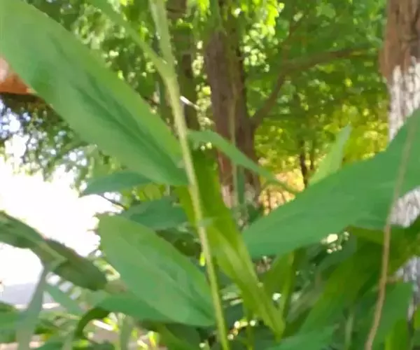姜叶枯病属真菌性病害,主要为害叶片,病叶上初生黄褐色病斑,逐渐向整个叶片扩展,病部生出黑色小粒点,严重时全叶变褐枯死。