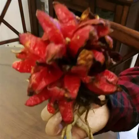 肉质根簇生,分枝疏、成单排,根茎肥大,嫩芽粉红色,耐旱,忌水。肉黄白色,表皮淡黄色,味辣,纤维少,品质佳,单株1-3公斤。