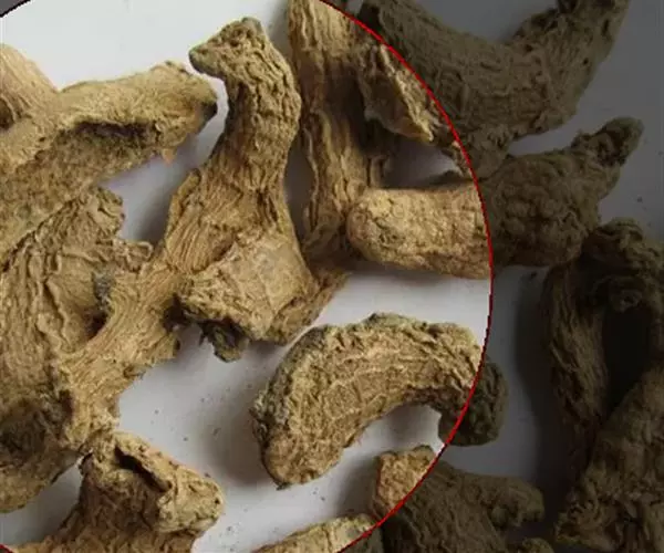 干姜,为姜科植物姜的干燥根茎。冬季采挖,除去须根和泥沙,将生姜晒干或烘干即为干姜。
