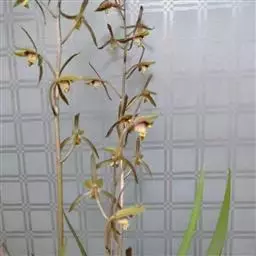 寒兰是兰科兰属的地生草本植物。茎为椭圆形;叶呈带状,尾部修长渐尖,叶脉较明显;每秆花枝开5-12朵,…
