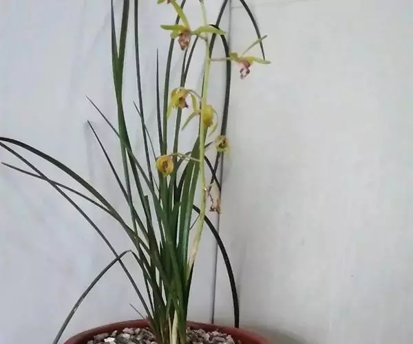建兰素花,绿白色,清香,一枝开花5至12朵。叶色钢青,细而挺拔,有铮铮铁骨之相,所以叫铁骨素。在日…