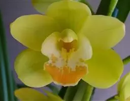 蕙兰(学名:Cymbidium faberi Rolfe):是兰科兰属的地生草本植物,假鳞茎不明显。叶5-8枚,带形,直立性强,叶脉透亮,边缘常有粗锯齿。花葶从叶丛基部最外面的叶腋抽出,总状花序具5-11朵或更多的花;花苞片线状披针形,最下面的1枚长于子房;花常为浅黄绿色,唇瓣有紫红色斑,有香气;花瓣与萼片相似,常略短而宽;唇瓣长圆状卵形,蕊柱稍向前弯曲,两侧有狭翅;花粉团4个,成2对,宽卵形。蒴果近狭椭圆形。花期3-5月。