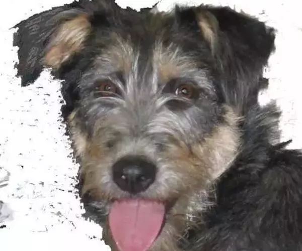 耳朵处宽,向眼睛方向逐渐变窄,口吻向鼻尖方向明显变窄。口吻尖,但牙齿和嘴唇较平。头部长,脑袋平坦而不圆,眼睛上方非常轻微地升起,但不靠近止部。头部的毛发长度中等,比其他毛发软一些。鼻镜为黑色(有些蓝驼色的狗的鼻镜是蓝色),且略微弯曲。浅色的狗应该有黑色的口吻。应该有丝质的髭[zī]须和漂亮的胡须。