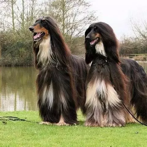 比较长,尖端略细,延伸到离地面1.5英寸的地方,或低于飞节1.5英寸。当他静止时,笔直下垂或略微弯曲,运动时或兴奋时,尾巴卷曲,但不能举过背部。覆盖有大量毛发,毛发浓厚而呈刚毛质地,下半部分毛发略长,而末端略有刘海不属于缺陷。卷曲或环状尾巴属于缺陷