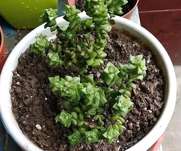红稚儿Crassula pubescens subsp. radicans Toelken为景天科、青锁龙属多肉植物。植株丛生,有细小的分枝,茎肉质,时间养久了茎会逐渐半木质化,红稚儿叶片有点薄,叶片颜色绿。颜色反差巨大,平时为绿色,日照充足的春秋季节,变为火红色。野外分布于南非东开普省布什维德谷。喜温暖干燥和阳光充足的环境,怕低温和霜雪,耐半阴。叶形叶色较美,有一定的观赏价值;盆栽可放置于电视、电脑旁,可吸收辐射,亦可栽植于室内以吸收甲醛等物质,净化空气。