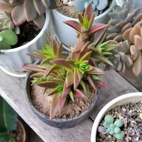 小米星需要阳光充足和凉爽、干燥的环境,耐半阴,怕水涝,忌闷热潮湿。具有冷凉季节生长,夏季高温休眠的习性,为多肉植物中的“冬型种”。每年的9月至第二年的6月为植株的生长期(花友的环境不一样,生长期也有长短),若光照不足会使植株徒长,叶与叶之间的上下距离拉长,使得株型松散,叶缘的红色也会减退;而在阳光充足之处生长的植株,株型矮壮,茎节之间排列紧凑。风筝的小米星就是养在全日照的阳光房里。生长期需保持土壤湿润,避免积水。