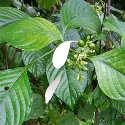 粉纸扇,茜草科玉叶金花属植物,半常绿灌木,株高1~3 m。叶对生,长椭圆形,顶端浙尖,基部楔形,全缘。…