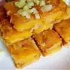 (2)勺内加花生油烧至90℃时,把地瓜块放入油内炸熟透至色泽金黄色时捞出控油。