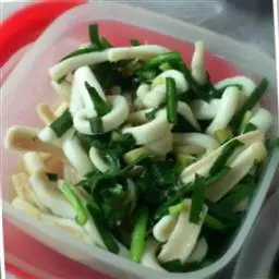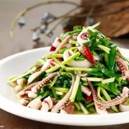 鱿鱼的切法:先从左角开始切,刀和鱿鱼呈45度的角,切那种连皮不要断刀的斜线就可以了;然后换反方向再…