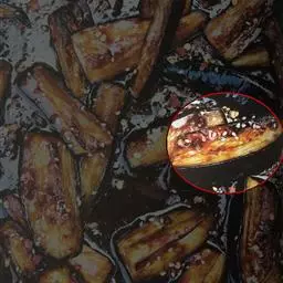 2臭豆腐切成一字条;野山椒去蒂剁细,臭豆腐烧好放在锅底,