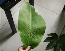 植株丛生,高3-7米,具匍匐茎,假茎厚而粗重,多少被白粉。叶直立或上举,长圆形,长1.5-3米,宽40-60厘米,叶面深绿,叶背淡绿,被明显的白粉,基部近心形或耳形,近对称,先端锐尖或尖,叶柄甚伸长,长在30厘米以上,多白粉,叶翼闭合。