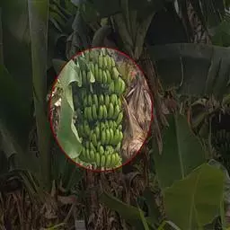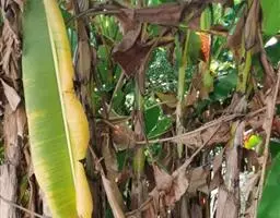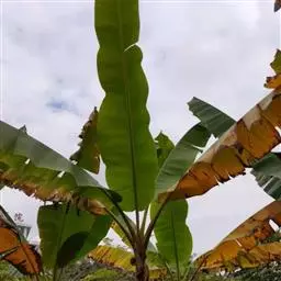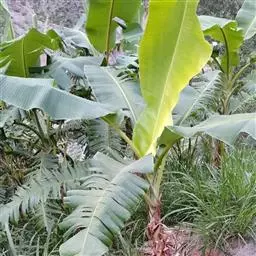 香蕉’),芭蕉科芭蕉属多年生草本植物,植株丛生,有匐匍茎;假茎浓绿有黑色斑点;叶片长圆形,…