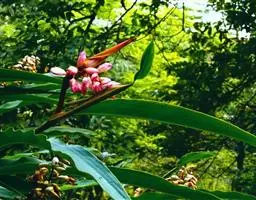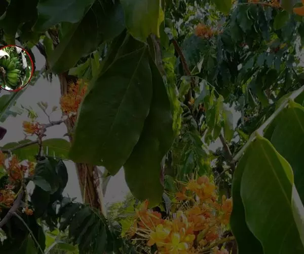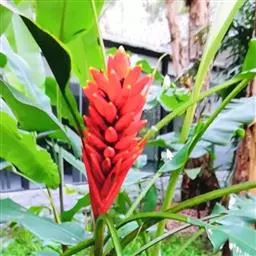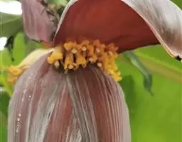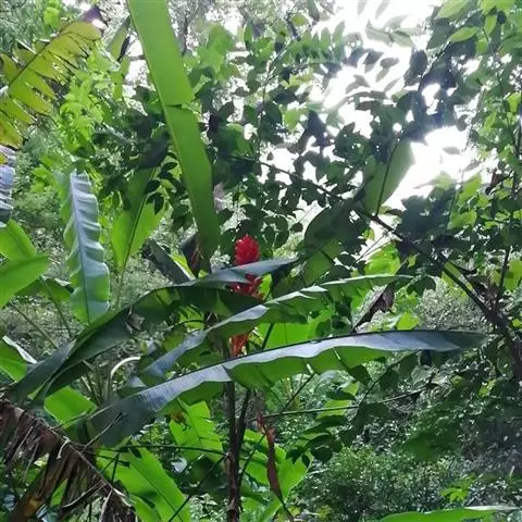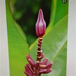 紫苞芭蕉形如一枝亭亭玉立、含苞待放的荷花,但却开在高高的芭蕉树上,这就是紫苞芭蕉。