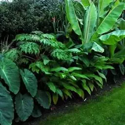 大蕉宜在园林湖区配修竹隐窗台,植于转廊曲径,檐角墙边,为庭院夏日遮阳的优良植物。