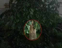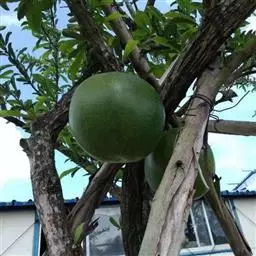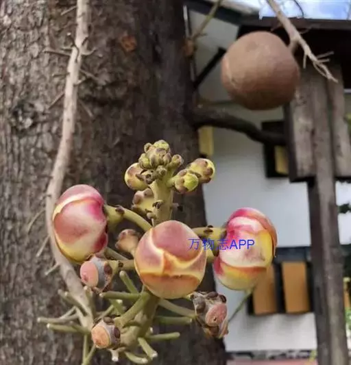 铁西瓜(学名Crescentia cujete L.)为紫葳科、葫芦树属的常绿小乔木,高5~18米,为典型的热带雨林“老茎生花”植物。其花、果单生于小枝或老茎上;花冠钟形,淡绿黄色,具褐色脉纹,春夏开花。