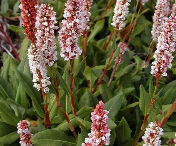 总状花序呈穗状,顶生,紧密,下部生珠芽;苞片卵形,膜质,每苞内具1-2花;花梗细弱;花被5深裂,白色或淡红色。花被片椭圆形,长2-3毫米;雄蕊8,花丝不等长;花柱3,下部合生,柱头头状。瘦果卵形,具3棱,深褐色,有光泽,长约2毫米,包于宿存花被内。花期5-7月,果期7-9月。