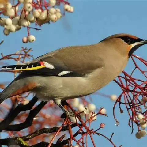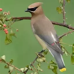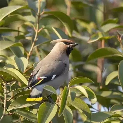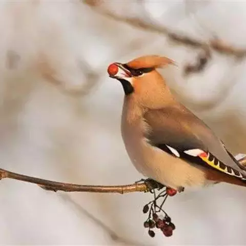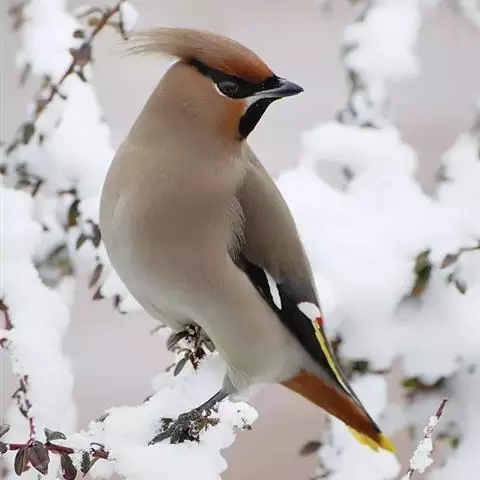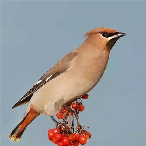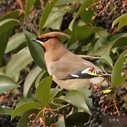 太平鸟属雀形目,太平鸟科的鸟类。太平鸟通体灰褐色,具羽冠;颏、喉黑色,尾羽先端黄色;虹膜暗红色;嘴…
