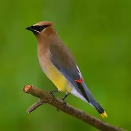 雪松太平鸟体形中等大小,体长约在19厘米左右。该物种雄雌同形同色,太平鸟成鸟额部及面部前端为栗色,…