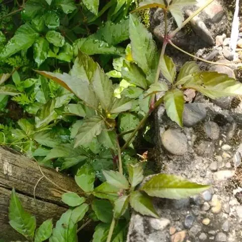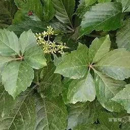 叶为掌状5小叶,小叶倒卵长椭圆形或倒卵披针形,长2-12厘米,宽1-5厘米,最宽处在近中部或中部以上,顶端急尖或渐尖,基部楔形,边缘上半部有5-12个锯齿,上面深绿色,无毛,显著呈泡状隆起,下面浅绿色,在脉上被短柔毛;侧脉4-9对,网脉上面不明显,下面微突起;叶柄长2-6厘米,被短柔毛,小叶有短柄或几无柄。