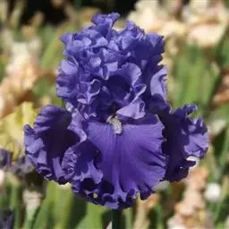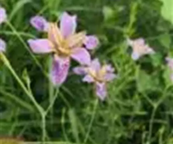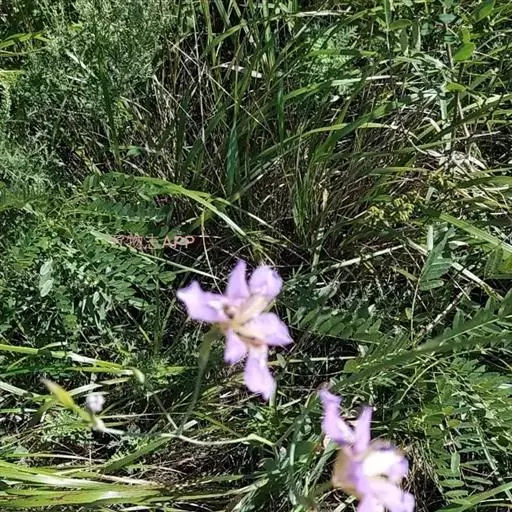 野鸢尾(学名:Iris dichotoma Pall.):多年生草本。根状茎为不规则的块状,棕褐色或黑褐色;须根发达,粗而长,黄白色,分枝少。叶基生或在花茎基部互生,两面灰绿色,剑形。花茎实心,高40-60厘米,上部二歧状分枝,分枝处生有披针形的茎生叶,下部有1-2枚抱茎的茎生叶,花序生于分枝顶端;苞片4-5枚,膜质,绿色,边缘白色,披针形,内包含有3-4朵花;花蓝紫色或浅蓝色,有棕褐色的斑纹,外花被裂片宽倒披针形,上部向外反折,内花被裂片狭倒卵形,顶端微凹。蒴果圆柱形或略弯曲,果皮黄绿色,革质;种子暗褐色,椭圆形,有小翅。花期7-8月,果期8-9月。