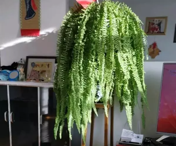 波斯顿蕨也叫高肾蕨,属于多年生常绿蕨类草本植物,是一类下垂状的蕨类观叶植物,适宜盆栽于室内吊挂观赏,其匍匐枝剪下可用作装饰配置材料。 波斯顿蕨幼苗向上直立生长,婷婷玉立,非常适合置于案头观赏,而当叶子长到一定程度垂下来时,波斯顿蕨又适合悬挂起来,在空中装点环境。