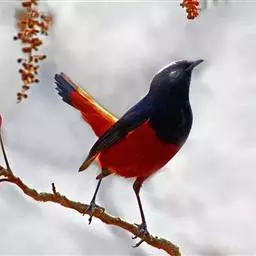 红头咬鹃: 体大,体长约33厘米,体重75-110克。头、颈暗绯红色;背、肩锈褐色。两翅黑色,…
