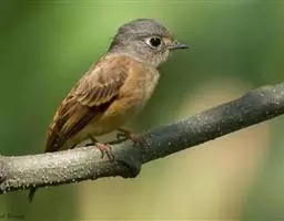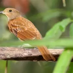 雌鸟上体灰褐色,有的沾有棕色,两翅褐色或浅褐色,腰、尾上覆羽和外侧尾羽淡栗棕色,中央尾羽淡褐色,前额和眼周浅色。颏至胸灰褐色,腹浅棕色,尾下覆羽浅棕褐色或乳白色。